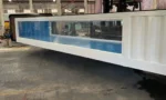 Finiture: Pavimento in lamiera d’acciaio, pavimentazione composita legno-plastica per la piattaforma della piscina, vetro temperato